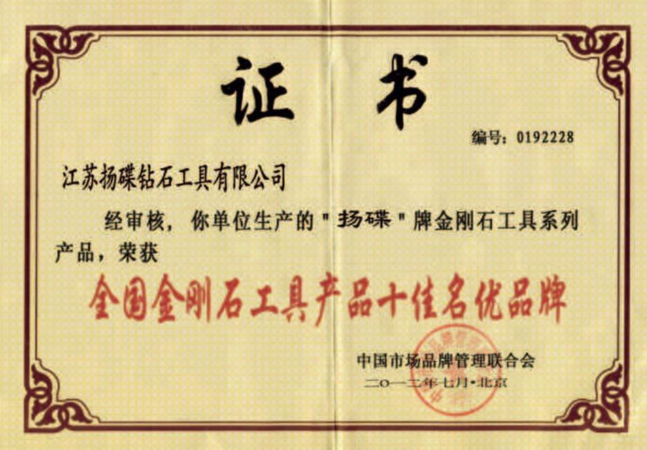 多年來,企業(yè)通過ISO9001國際質(zhì)量體系認(rèn)證,被中國中輕產(chǎn)品質(zhì)保中心授予“全國金剛石制造行業(yè)質(zhì)量放心滿意單位”,獲得江蘇省高新技術(shù)企業(yè)稱號,榮獲江蘇省小巨人稱號,變速箱PCD復(fù)合鉆鉸刀獲省高新技術(shù)產(chǎn)品等等。